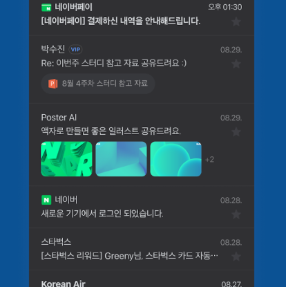 - 다음 메일 앱: 메일 전용 관리, 중요 메일만 알림 설정 가능